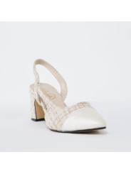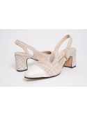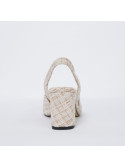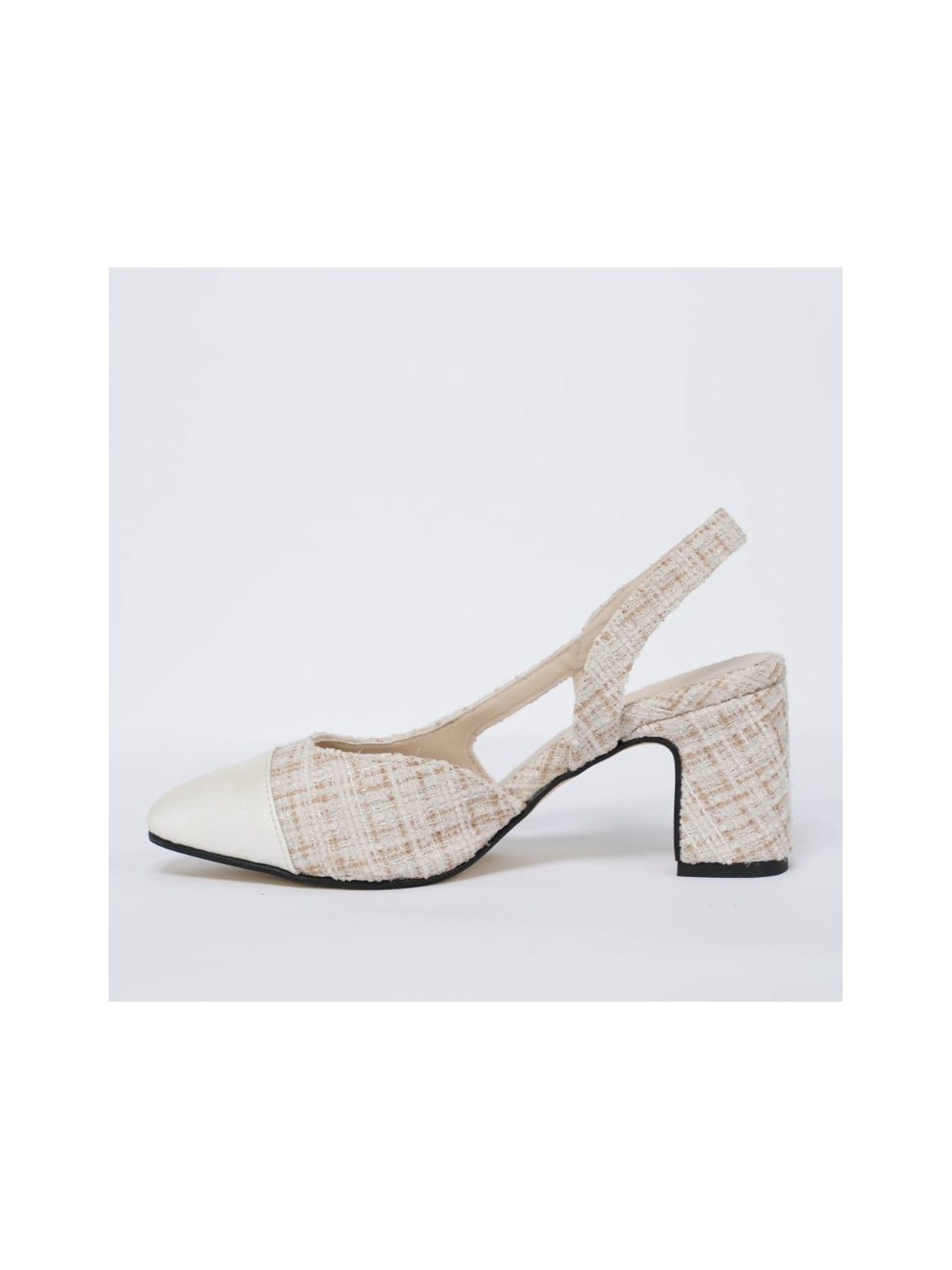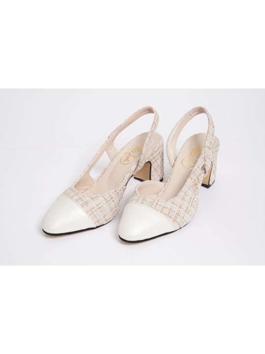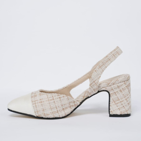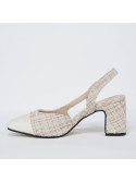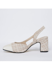 CLÉA — Slingback raffiné en tissu Chanel (Beige & Blanc Nacré)
