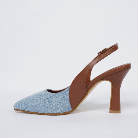 YOZARELLA — Slingback audacieux (Bleu Jean & Marron)