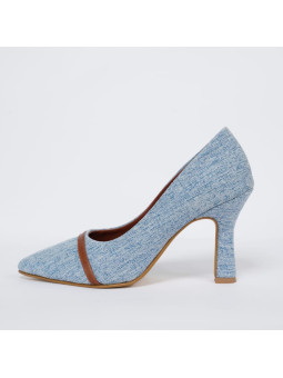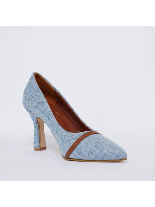 GLORIA — L’escarpin raffiné, réinventé ( Bleu Ciel Tweed & Détail Camel)